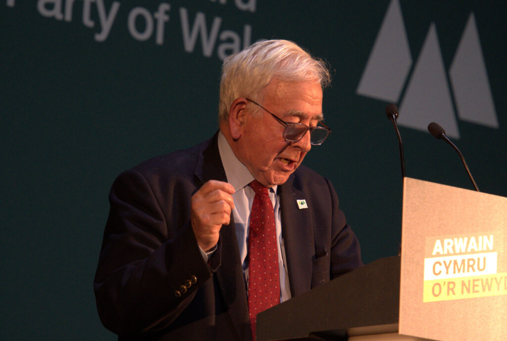 Lord Dafydd Wigley, delivers his speech to conference on Friday.